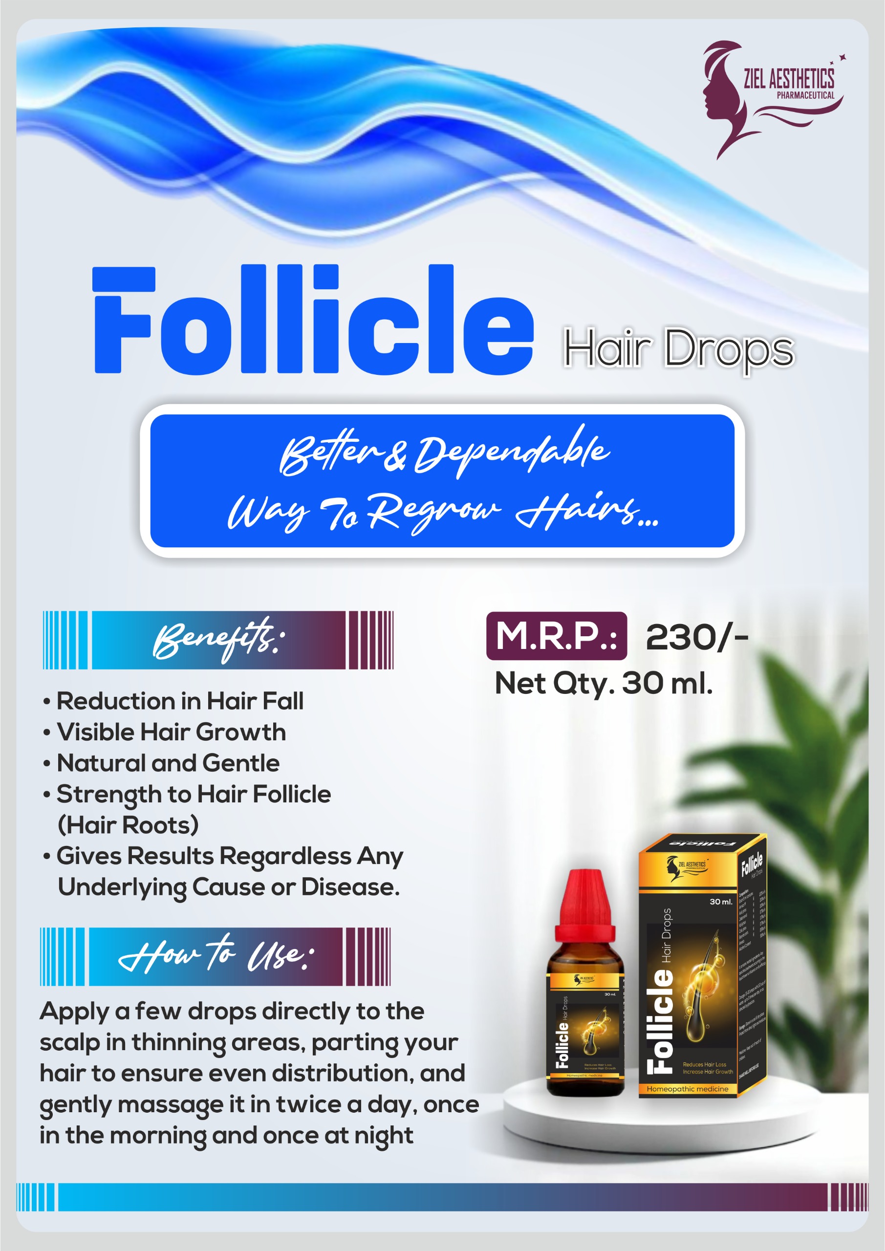 Follicle Hair Drops is a very effective and proven medicine for hair fall caused by any reason mentioned above or not. You can notice visible results within 15-20 days of taking regular medicine.